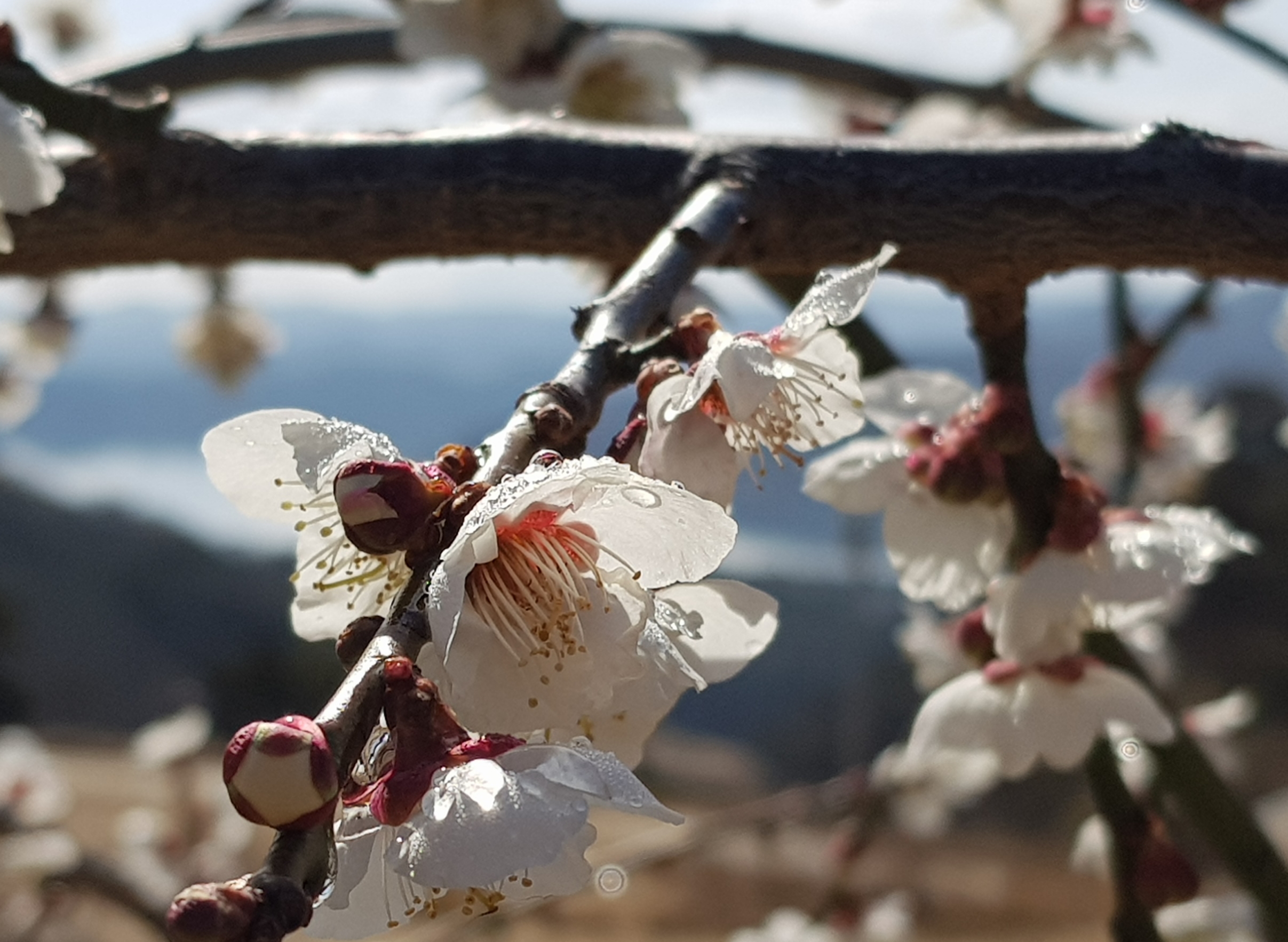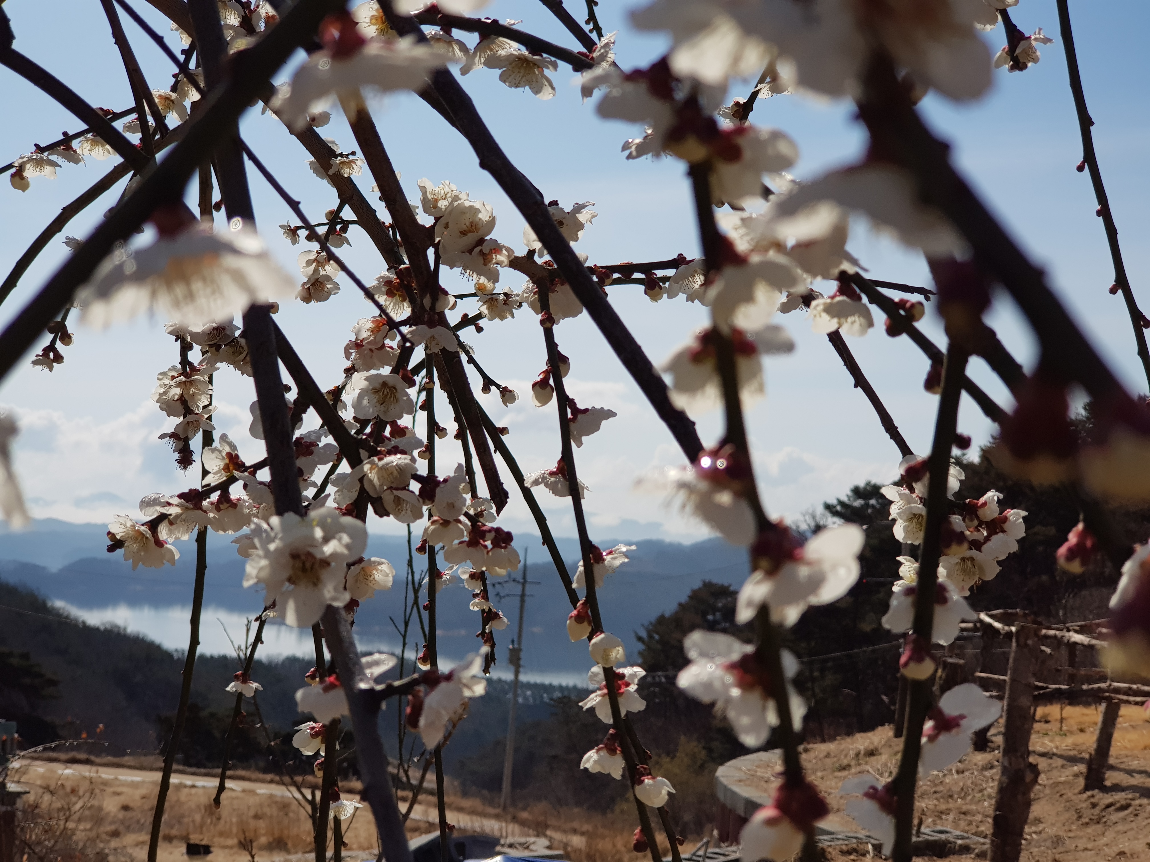 "주인님", 굵은 바리톤 저음으로 누군가 불러서 돌아보니 능수 매화가 자기 이름처럼 꽃가지를 아래로 내려 소담스럽게 꽃을 피웠네요.