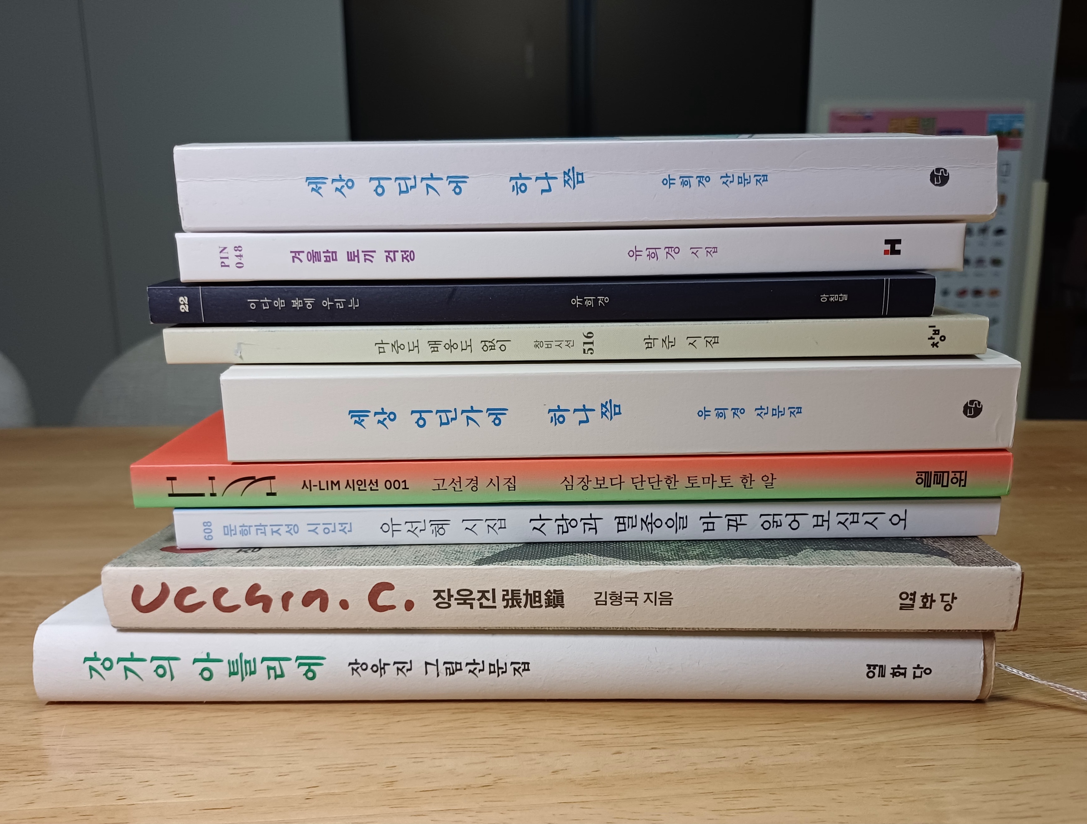 동양서림에서는 장욱진 화가 관련 책 2권을 ‘위트 앤 시니컬’에서는 서점 주인 유희경 시집과 수필집 그러고 다른 시인들 여러 권의 시집을 골랐습니다.